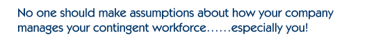 Before any Contingent Workforce Management solution is considered (or offered, for that matter), it is vital that your organization has a clear and consistent view of both the current environment and the goals. Without that, it is virtually guaranteed that the solution will not fit…either too much, not enough, or the wrong focus.